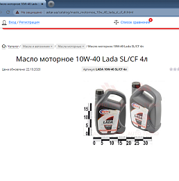 1. Масло моторное 10W-40 LADA SL/CF 4л.
